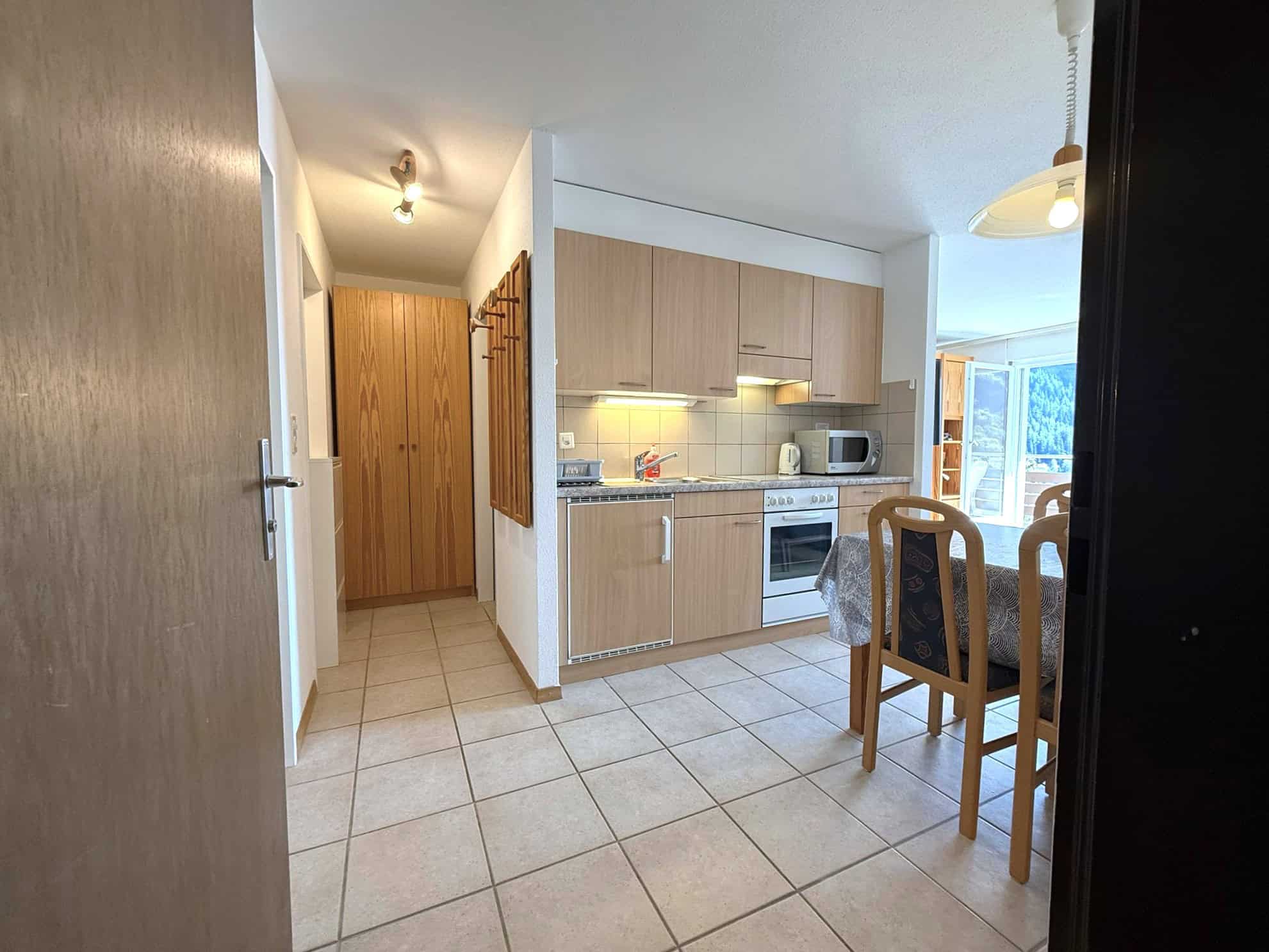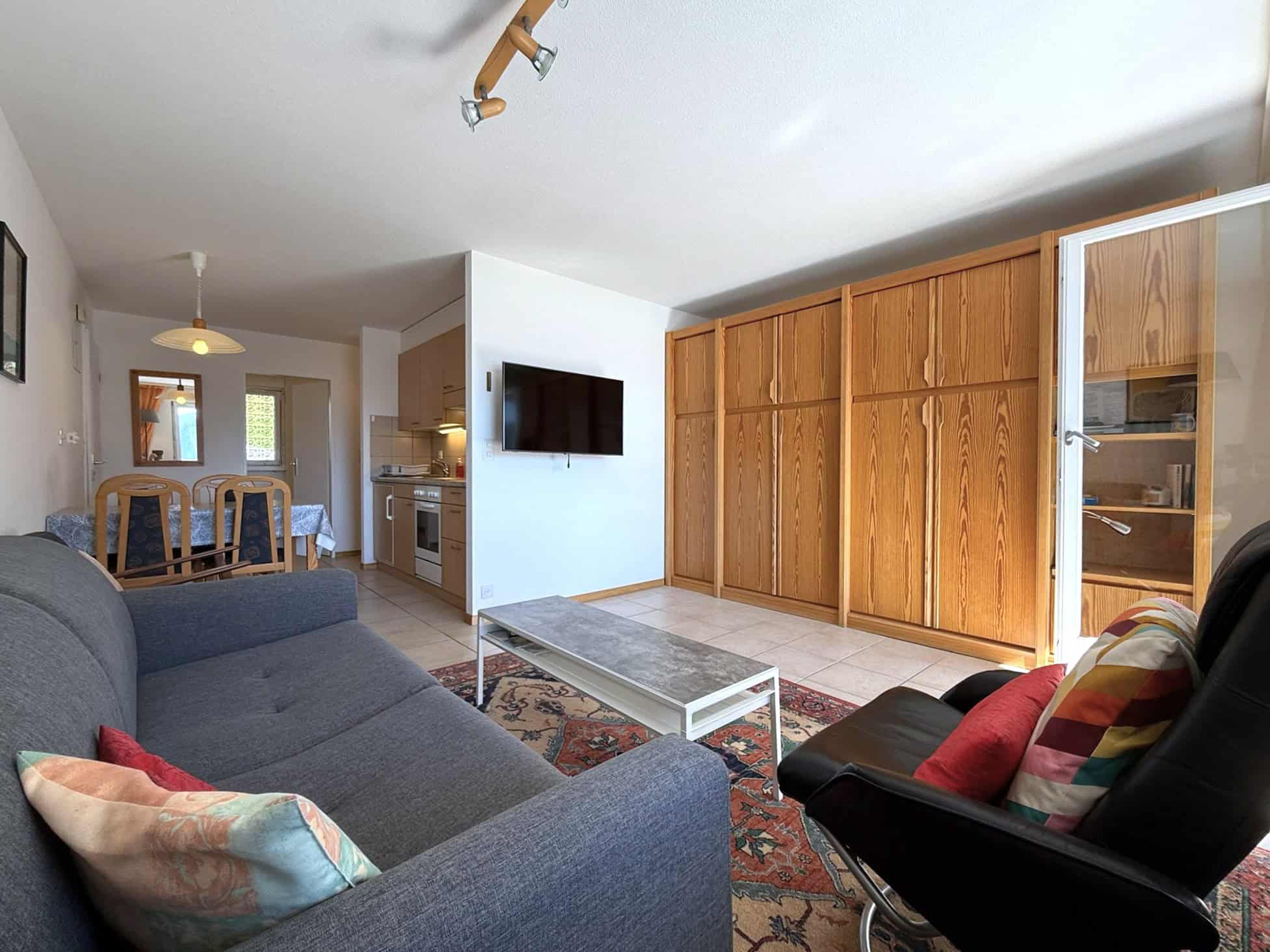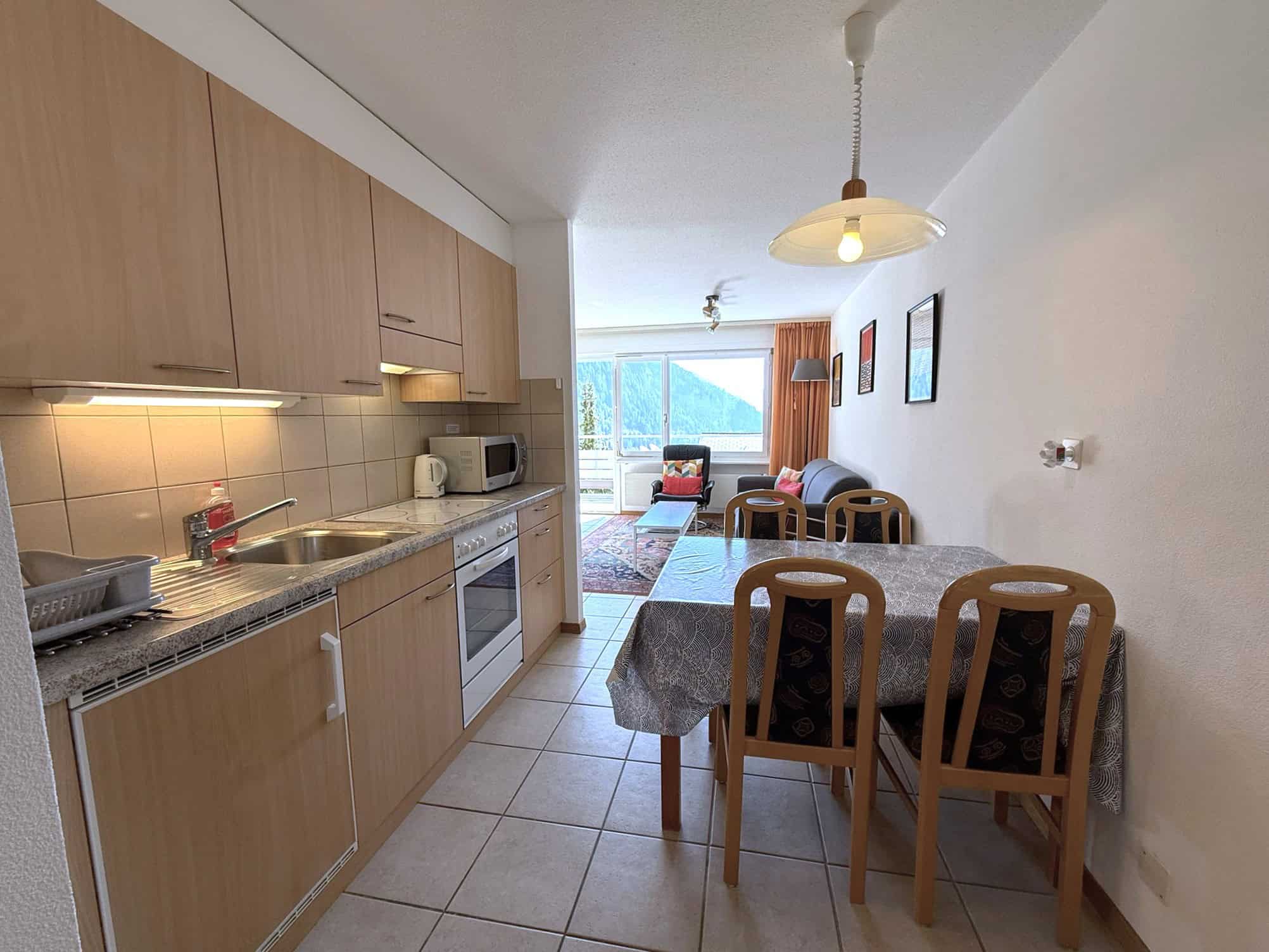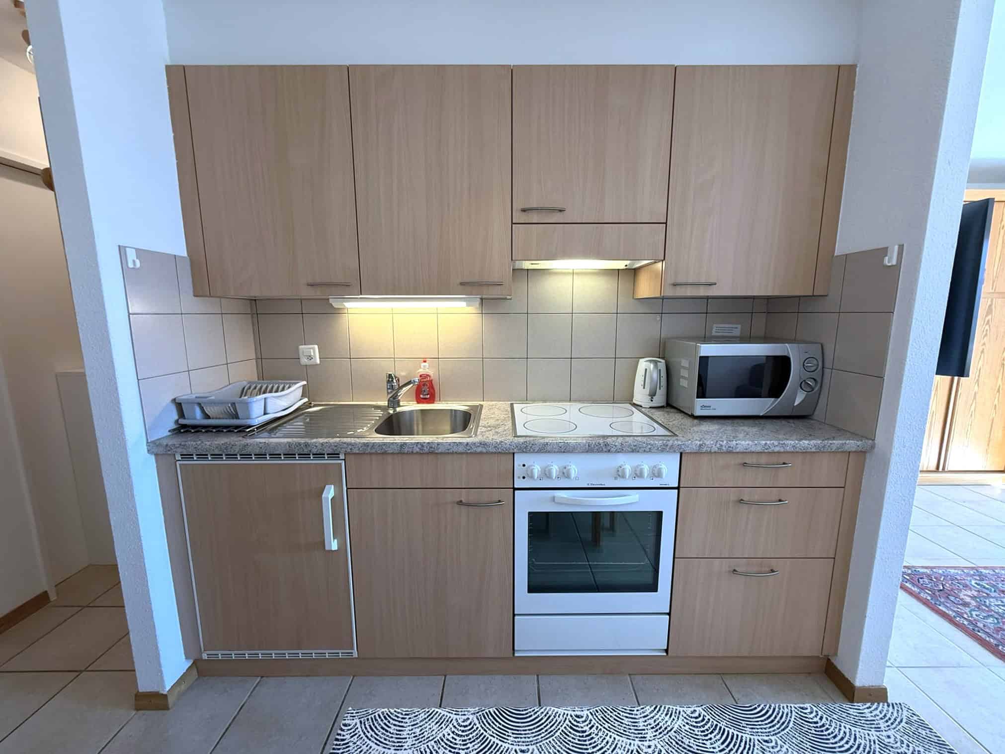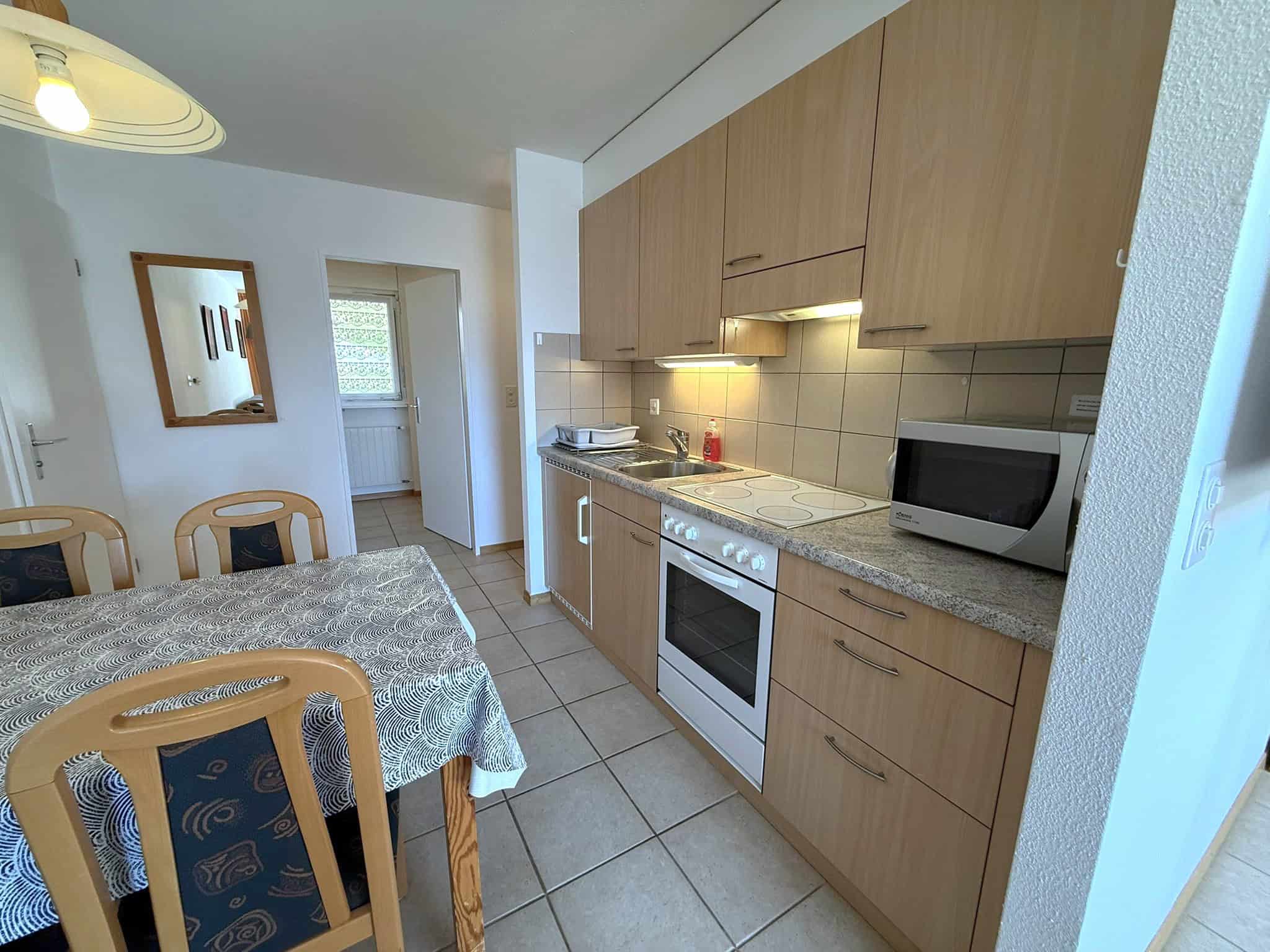 - Wohnküche mit Backofen, Cerankochfeld, Kühlschrank mit Tiefkühlfach, Kaffeemaschine Nespresso, Wasserkocher, Raclette- und Fondueset, Mikrowelle