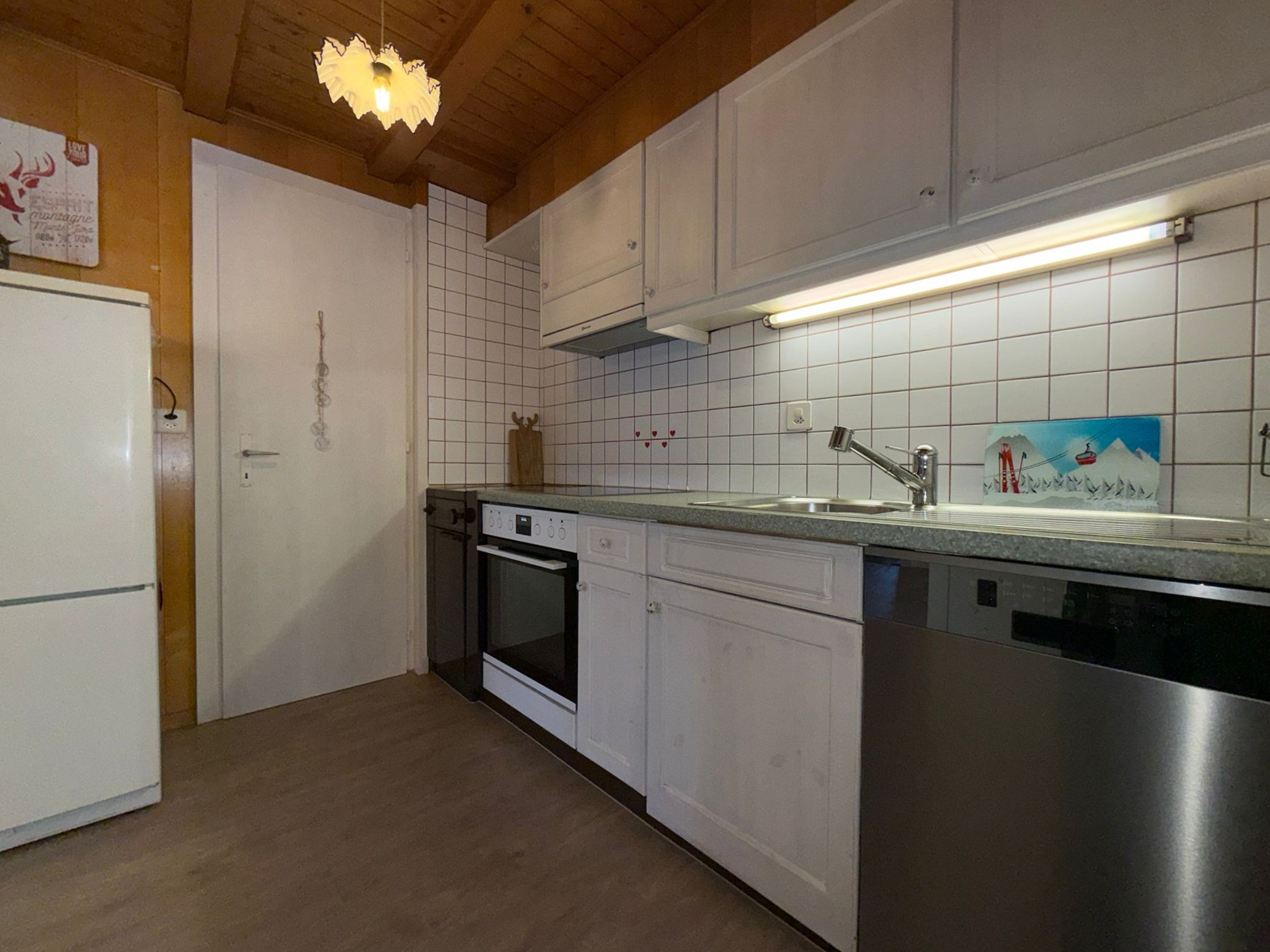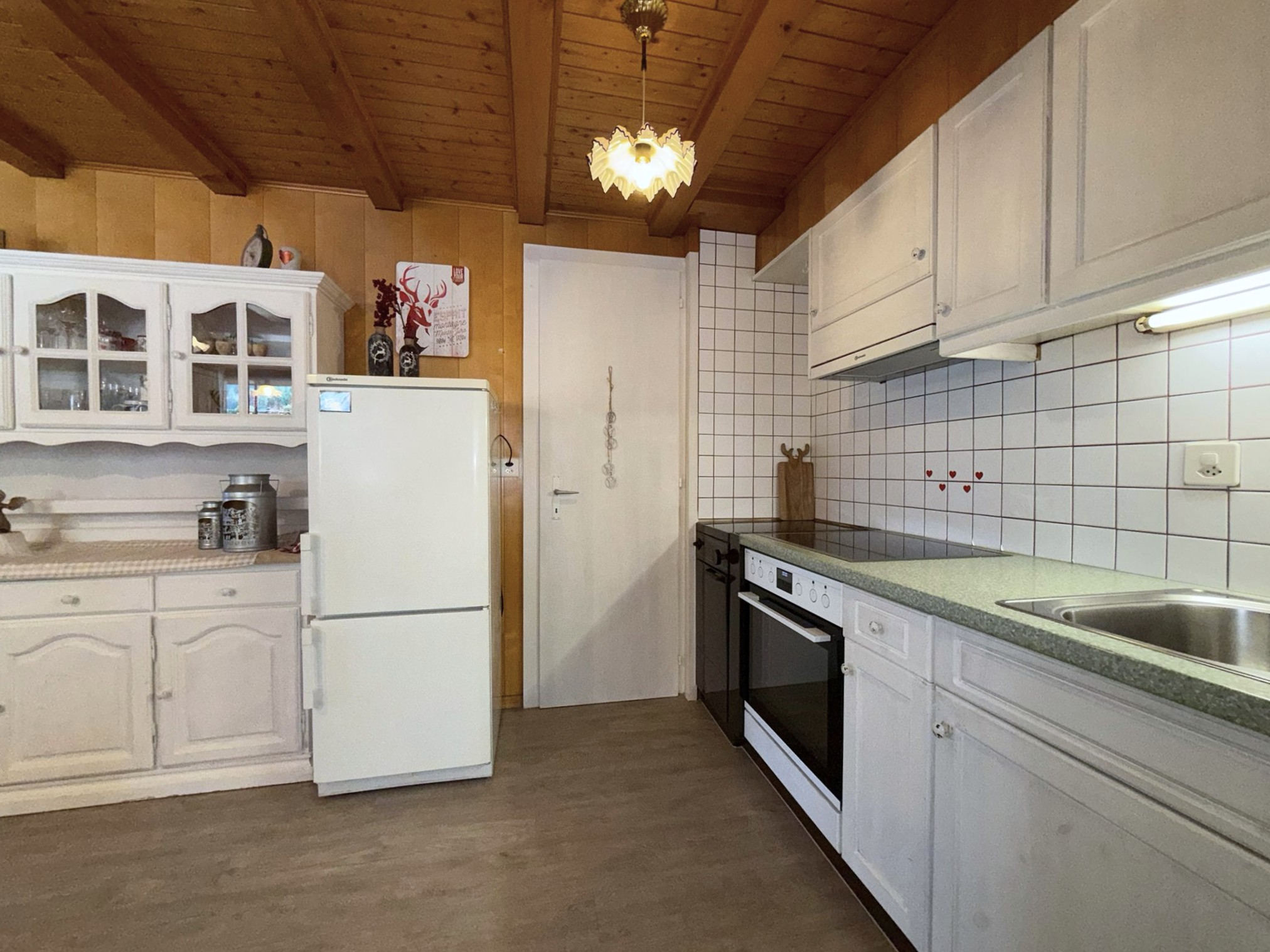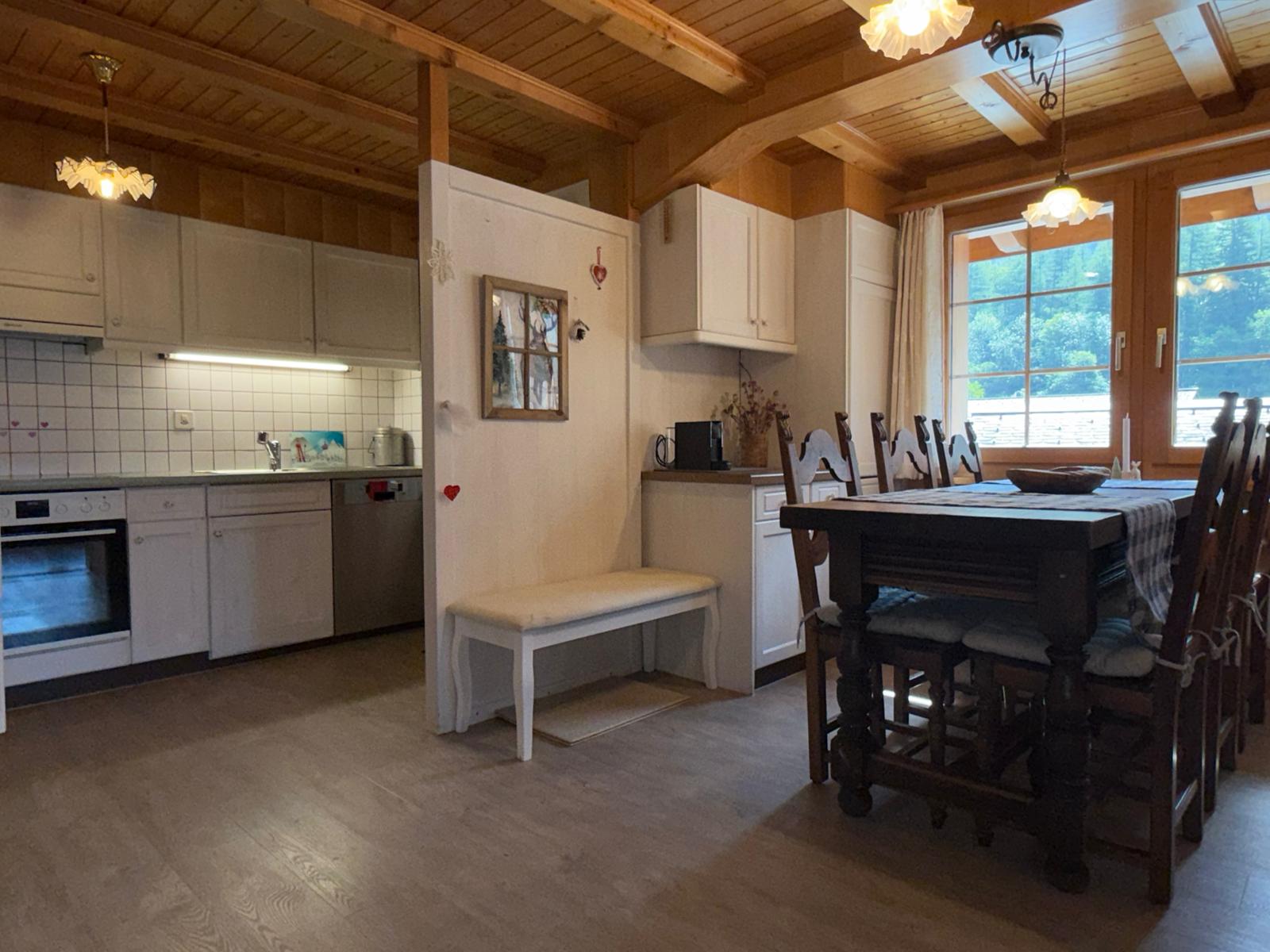 • Küche mit Backofen, Cerankochfeld, Kühlschrank mit Tiefkühlfach, Kaffeemaschine Nespresso, Wasserkocher, Geschirrspüler