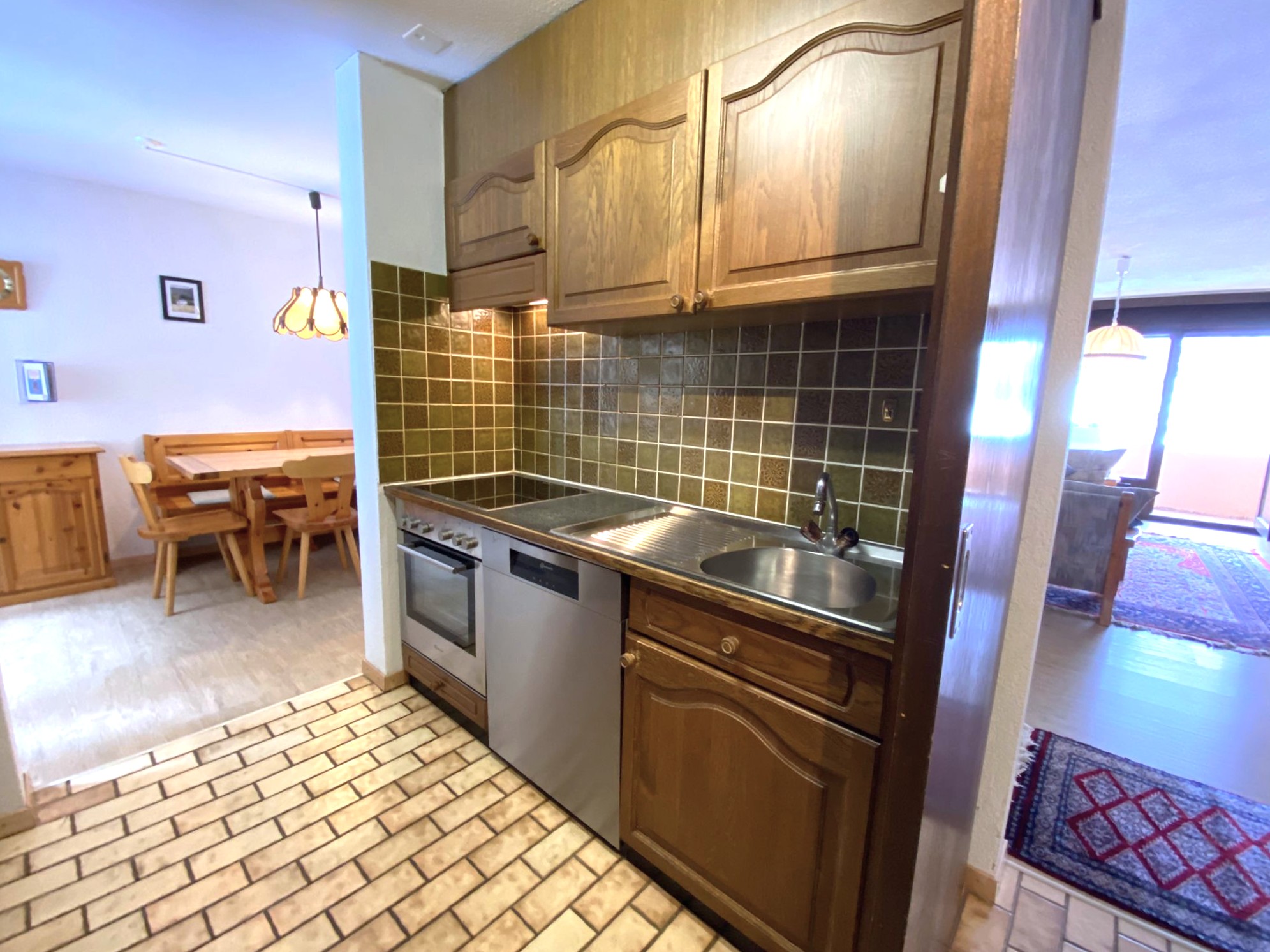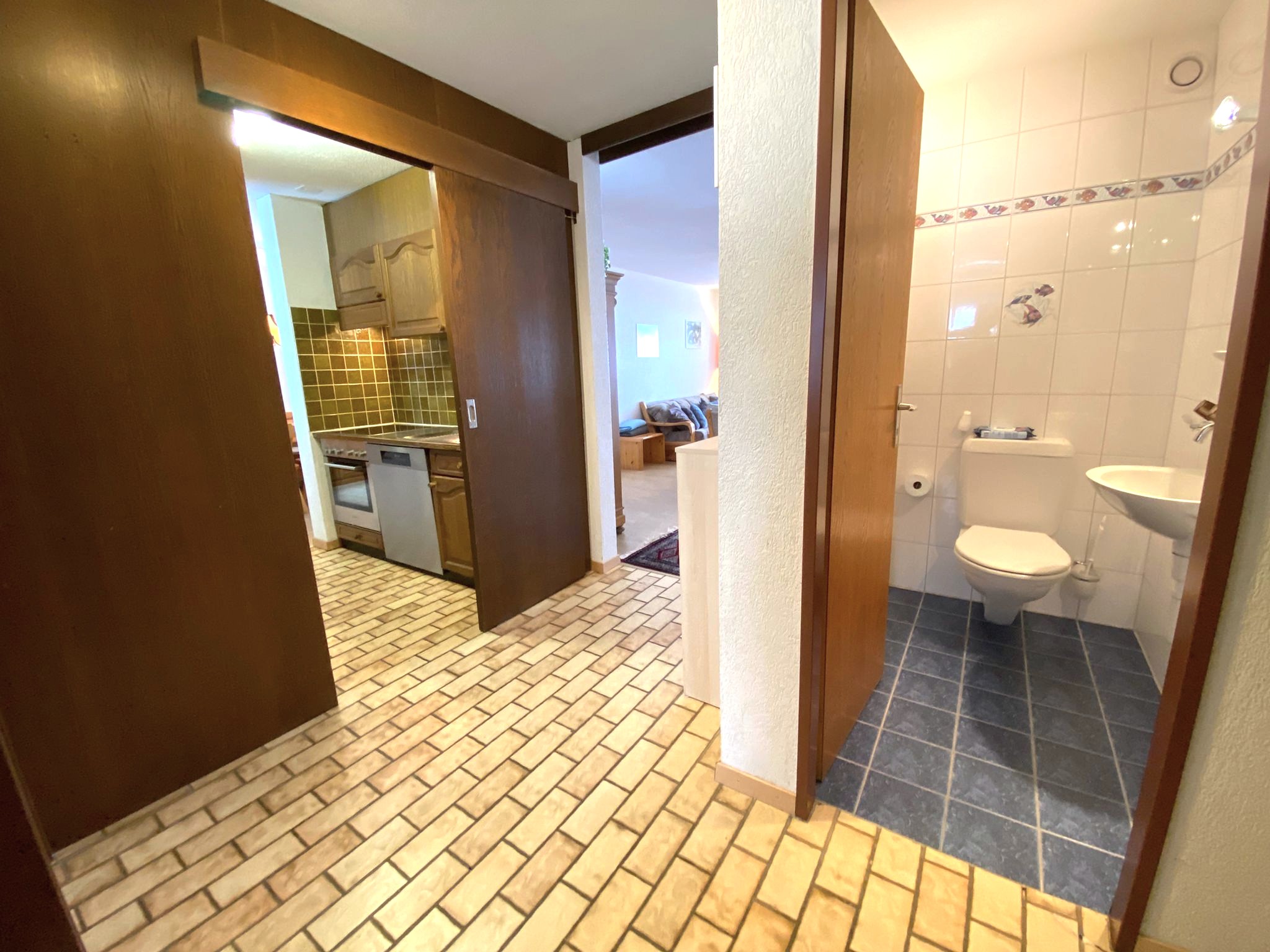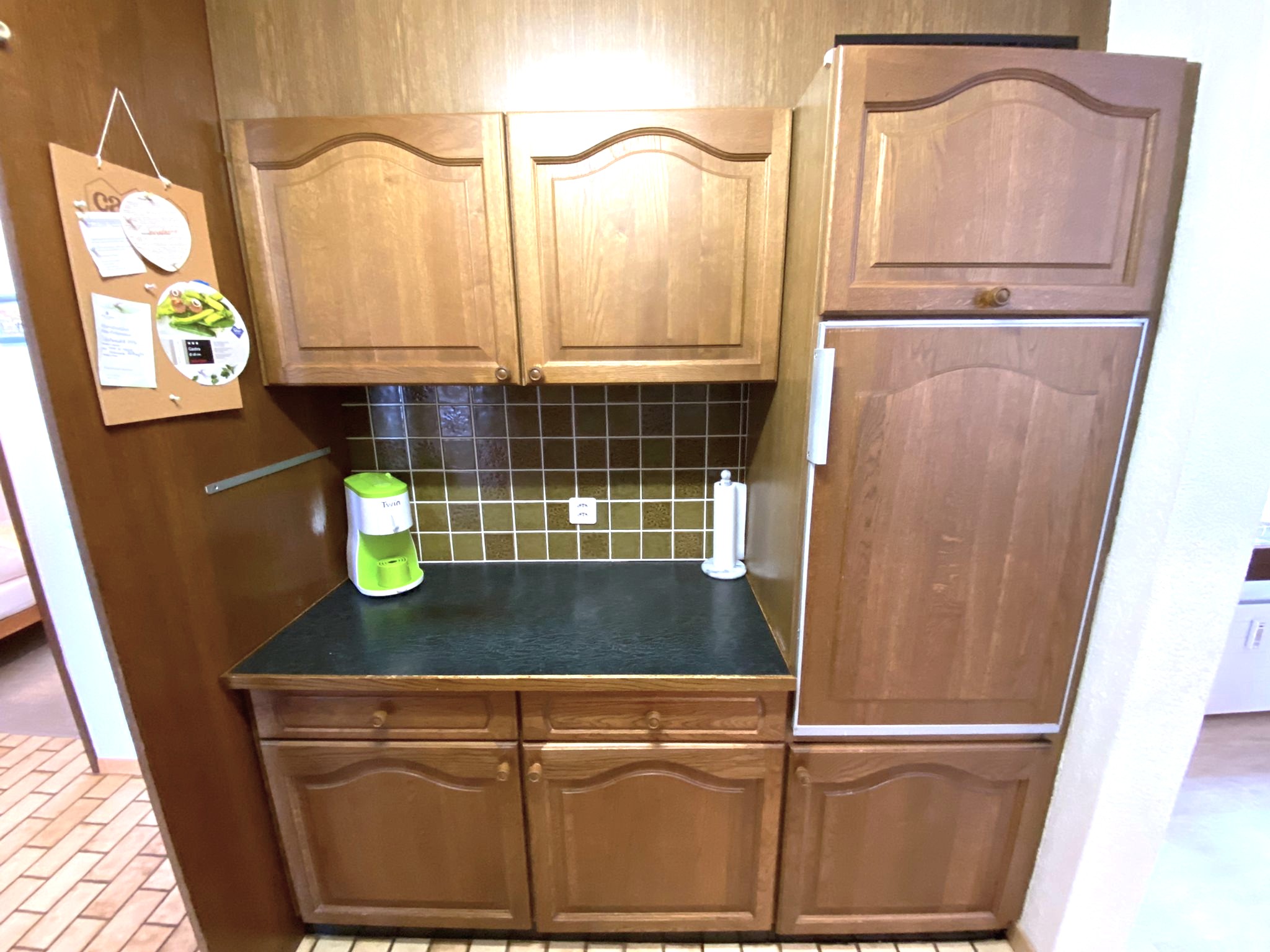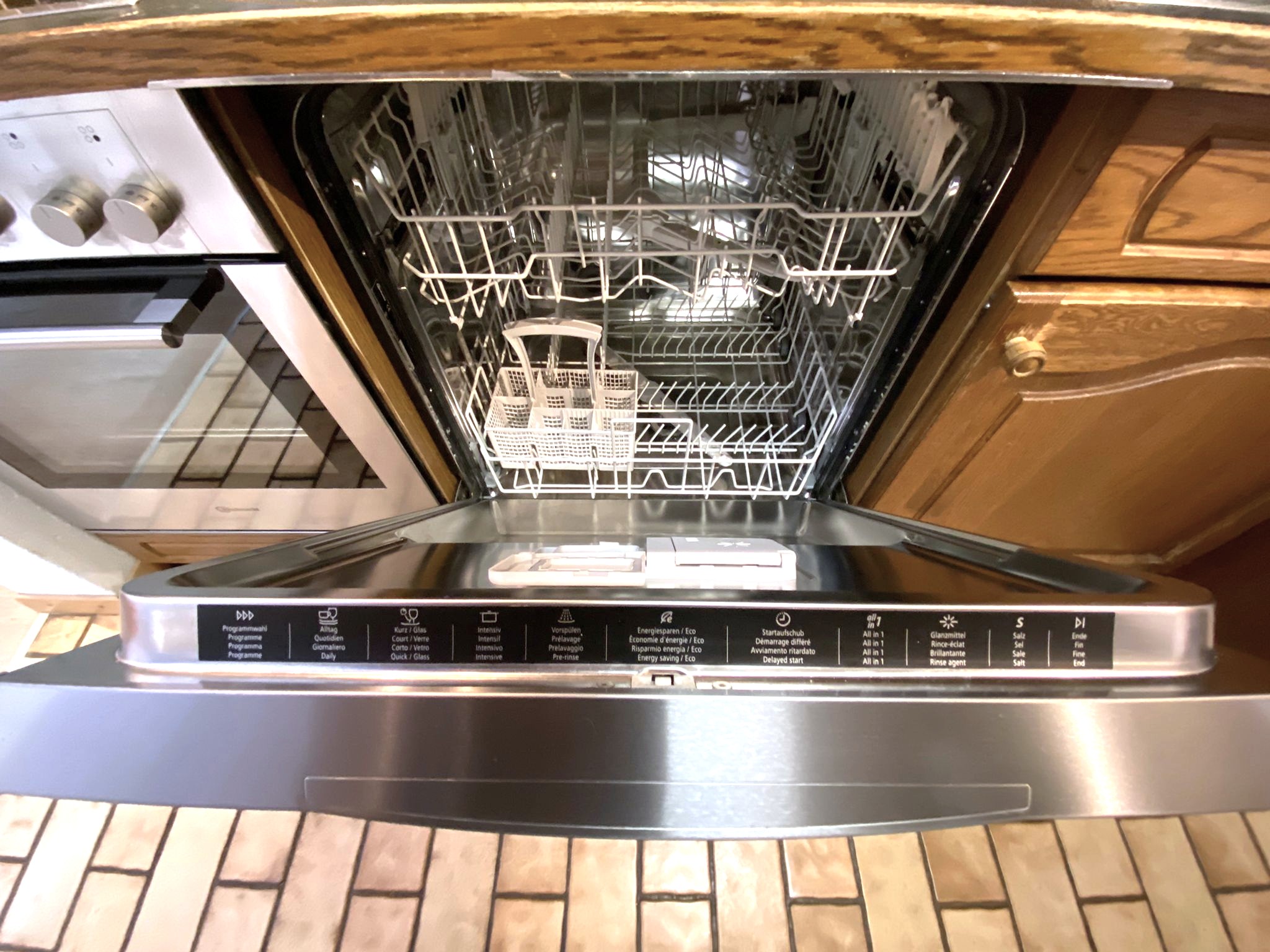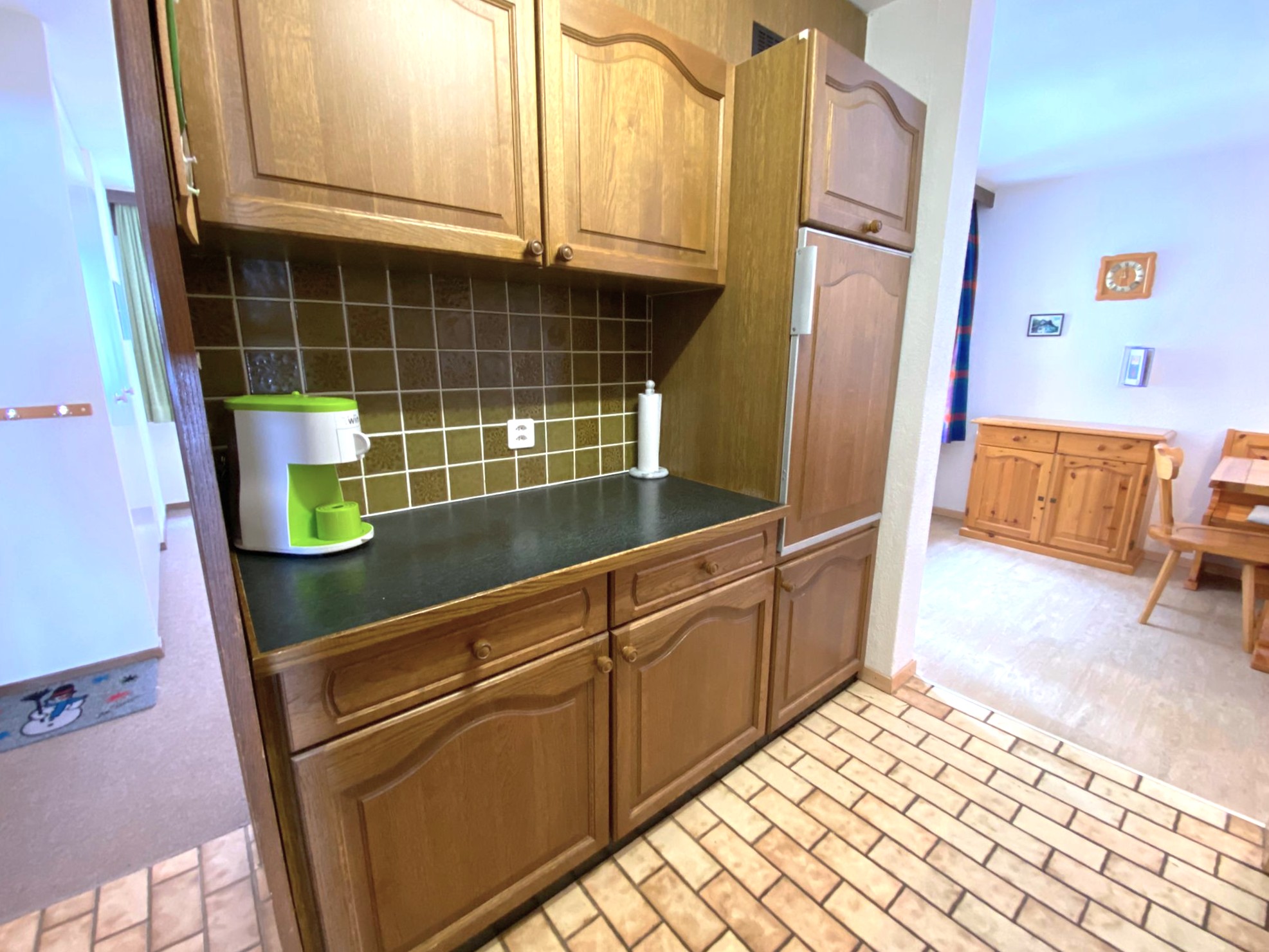 - Küche mit Backofen, Cerankochfeld, Kühlschrank mit Tiefkühlfach, Kaffeemaschine Delizio, Wasserkocher, Fondue- und Racletteset, Geschirrspülmaschine