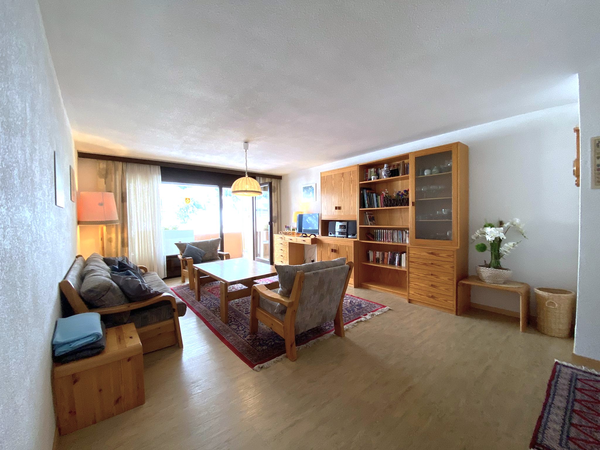 - Wohnzimmer mit gemütlicher Sofagruppe und Ausgang zum Balkon