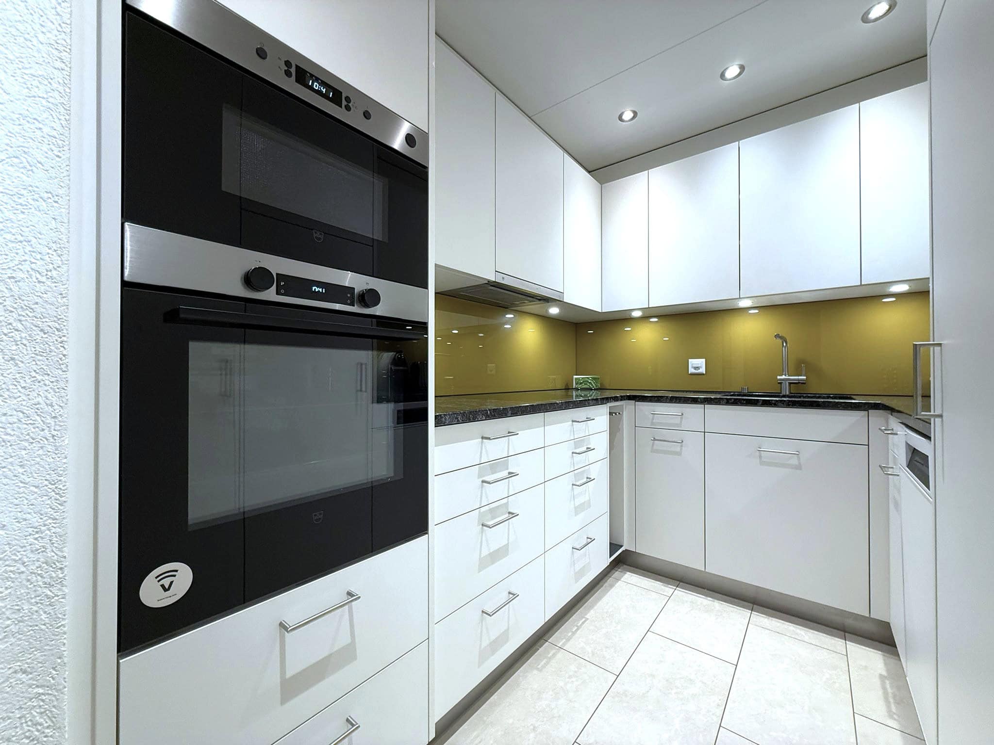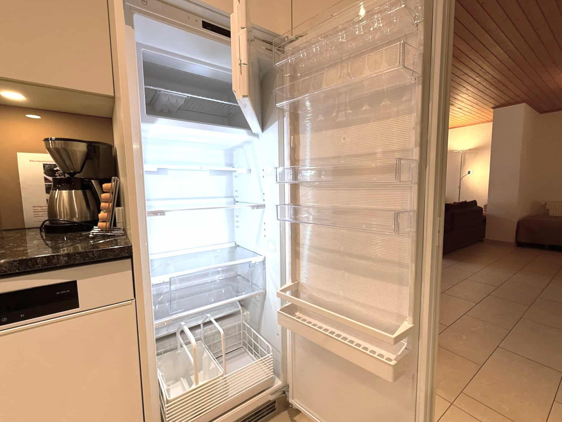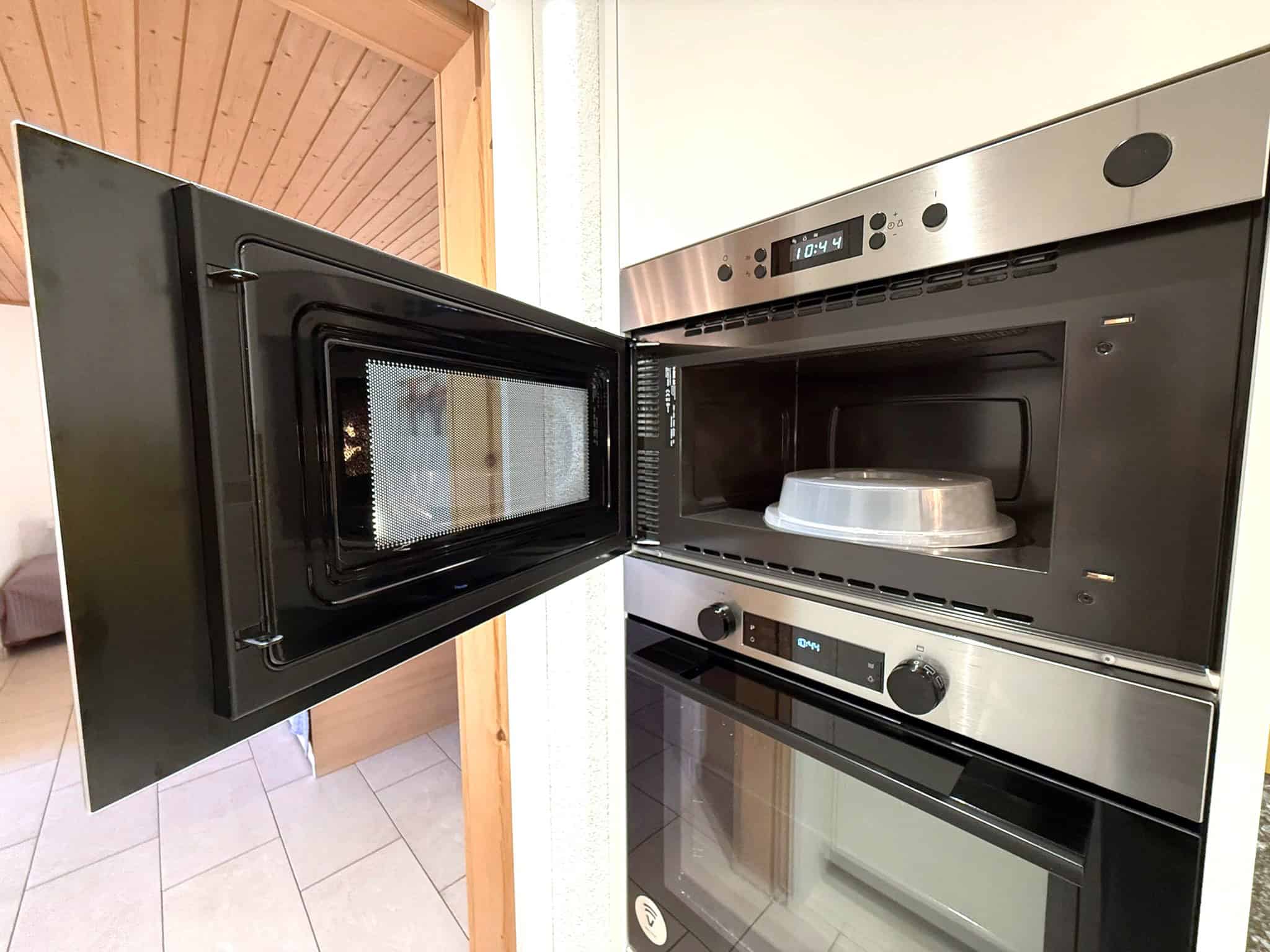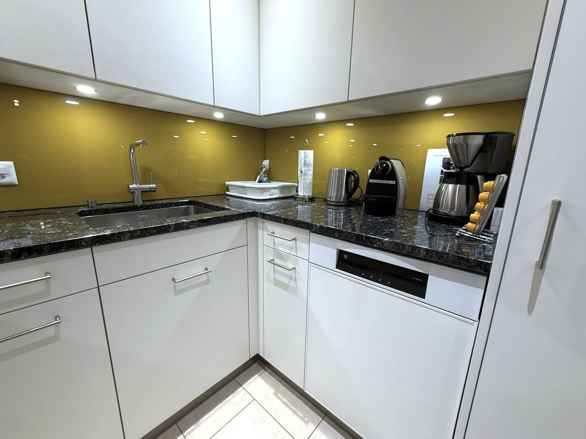 - Küche mit Backofen, Cerankochfeld, Kühlschrank mit Tiefkühlfach, Filter-Kaffeemaschine, Wasserkocher, Geschirrspüler, Fondu- und Raclette-Set, Mikrowelle