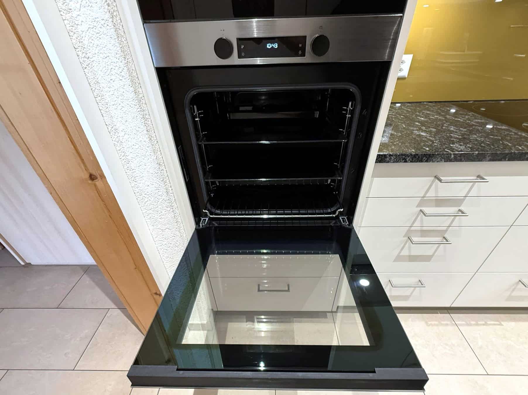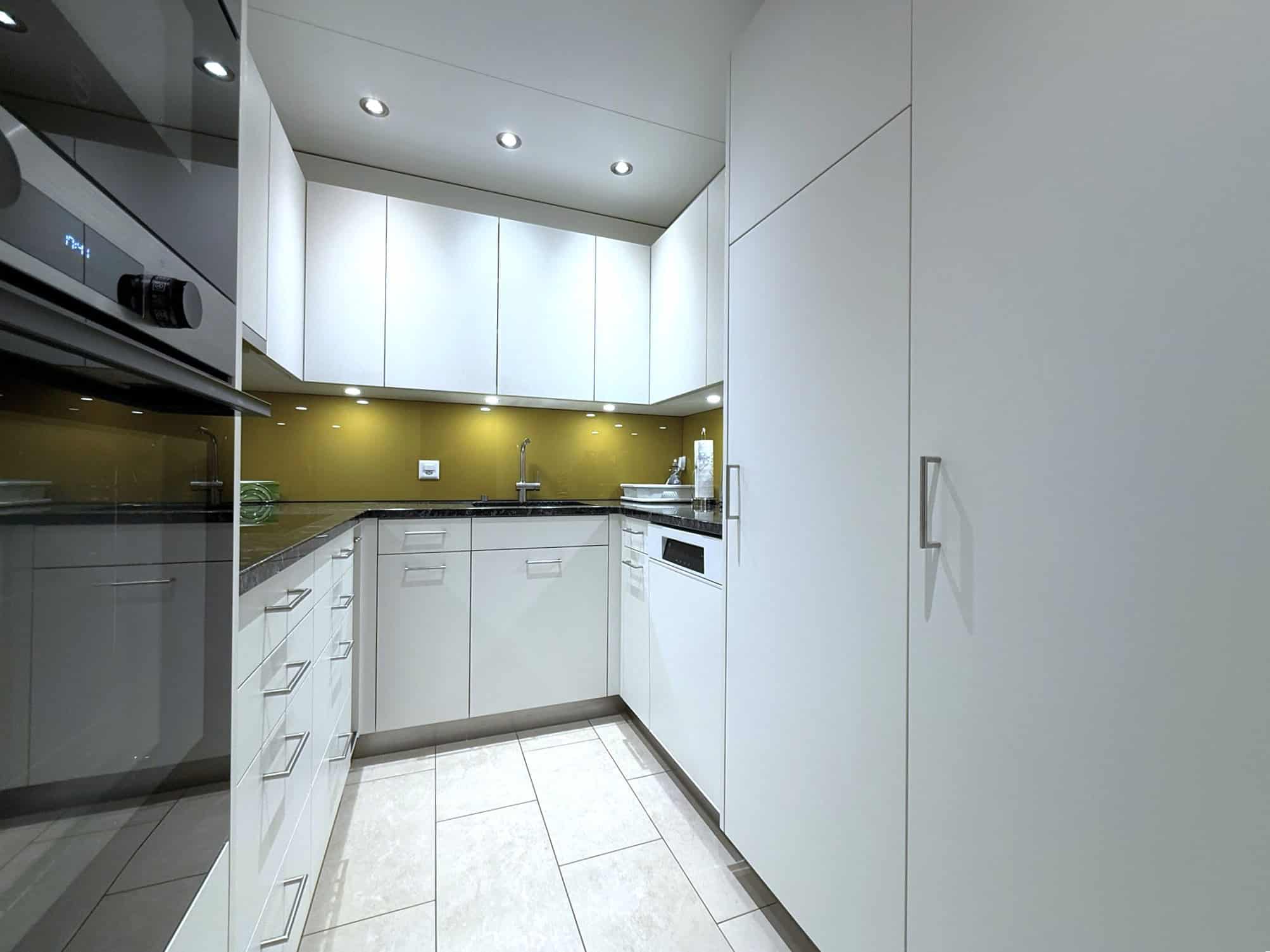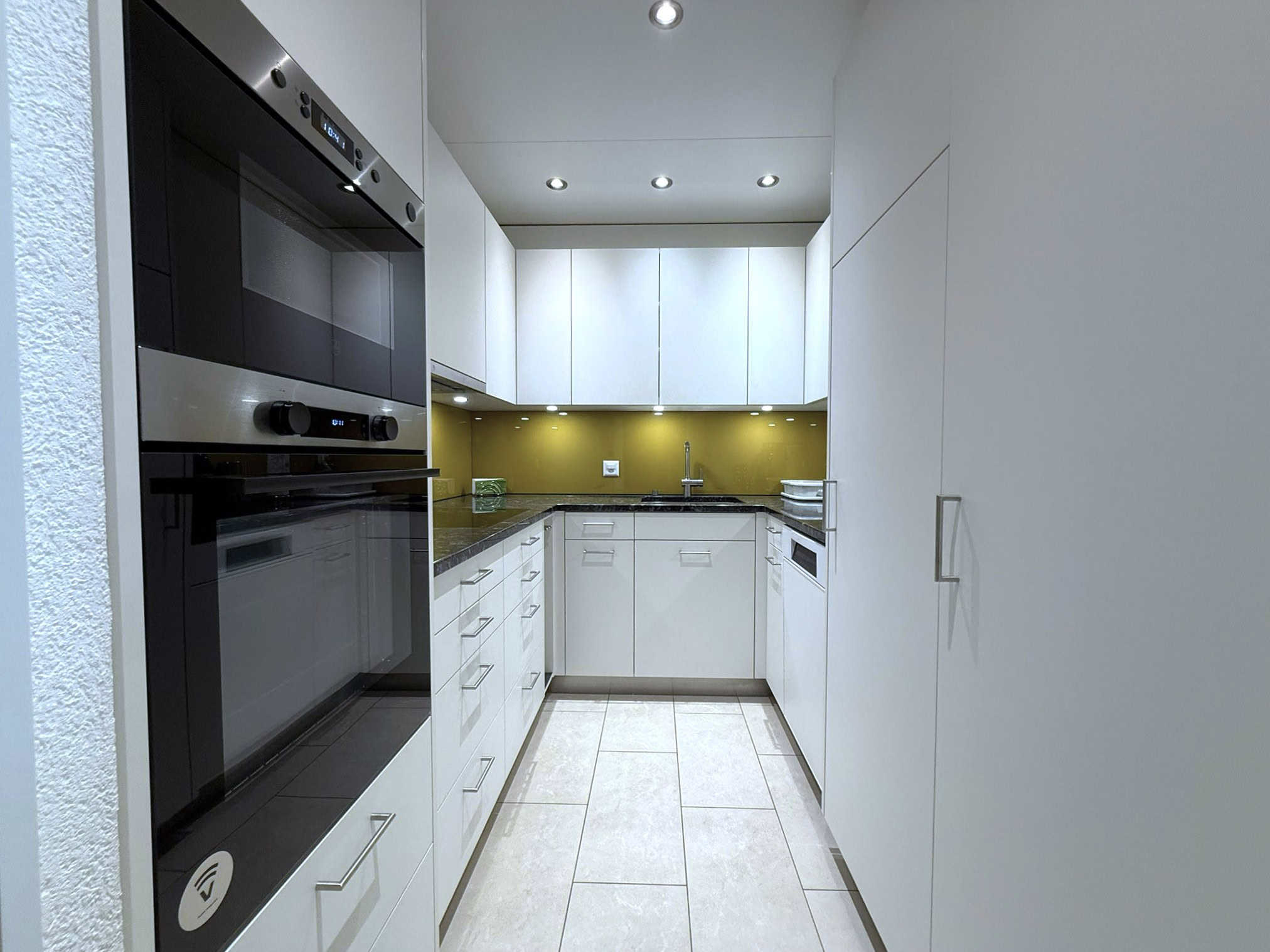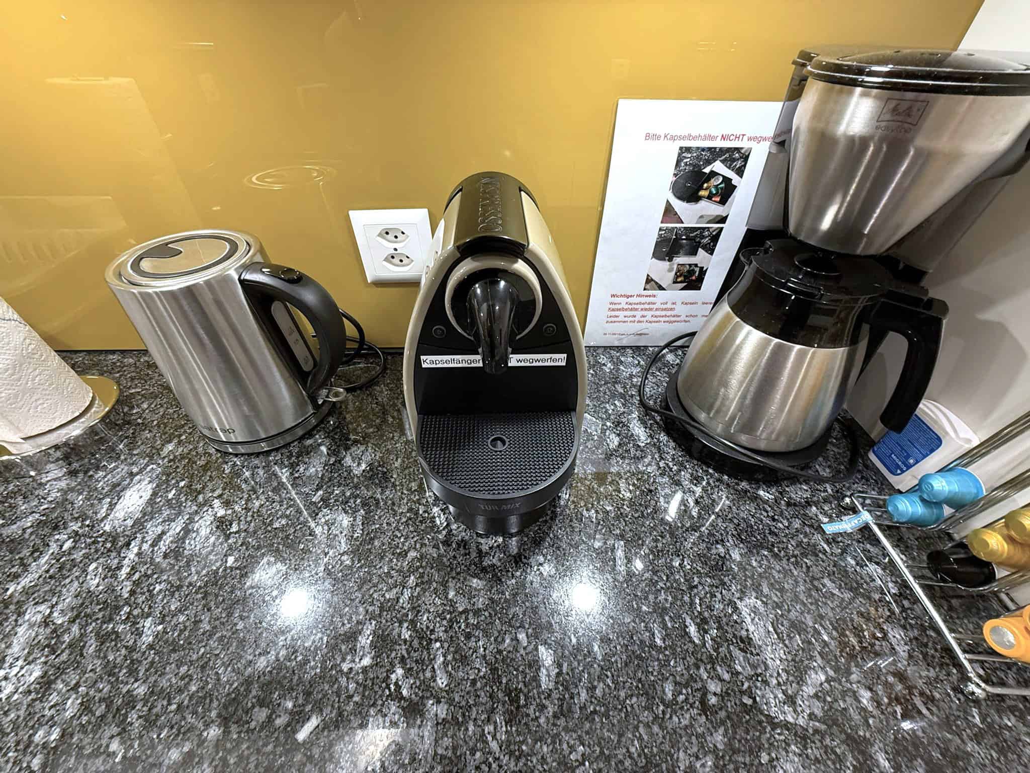- Küche mit Backofen, Cerankochfeld, Kühlschrank mit Tiefkühlfach, Filter-Kaffeemaschine, Wasserkocher, Geschirrspüler, Fondu- und Raclette-Set, Mikrowelle