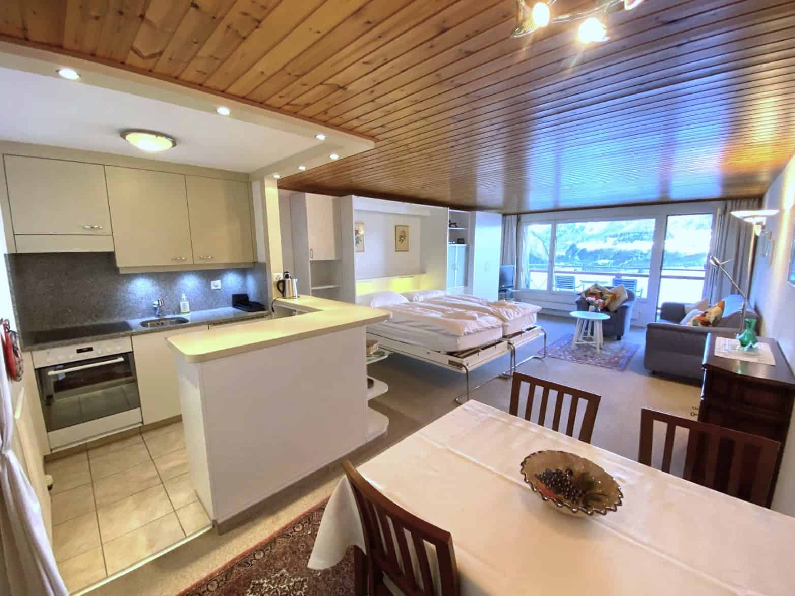 - Wohn- / Esszimmer mit Schlafsofa und 2 Schrankbetten