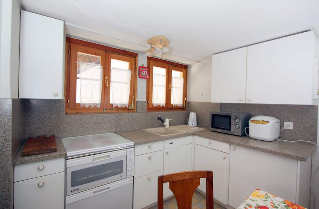 • Wohnküche mit Backofen, 4 Herdplatten, Kühlschrank mit Tiefkühlfach, Bialetti Kaffeekocher, Wasserkocher, Mikrowelle, Geschirrspülmaschine, Esstisch
