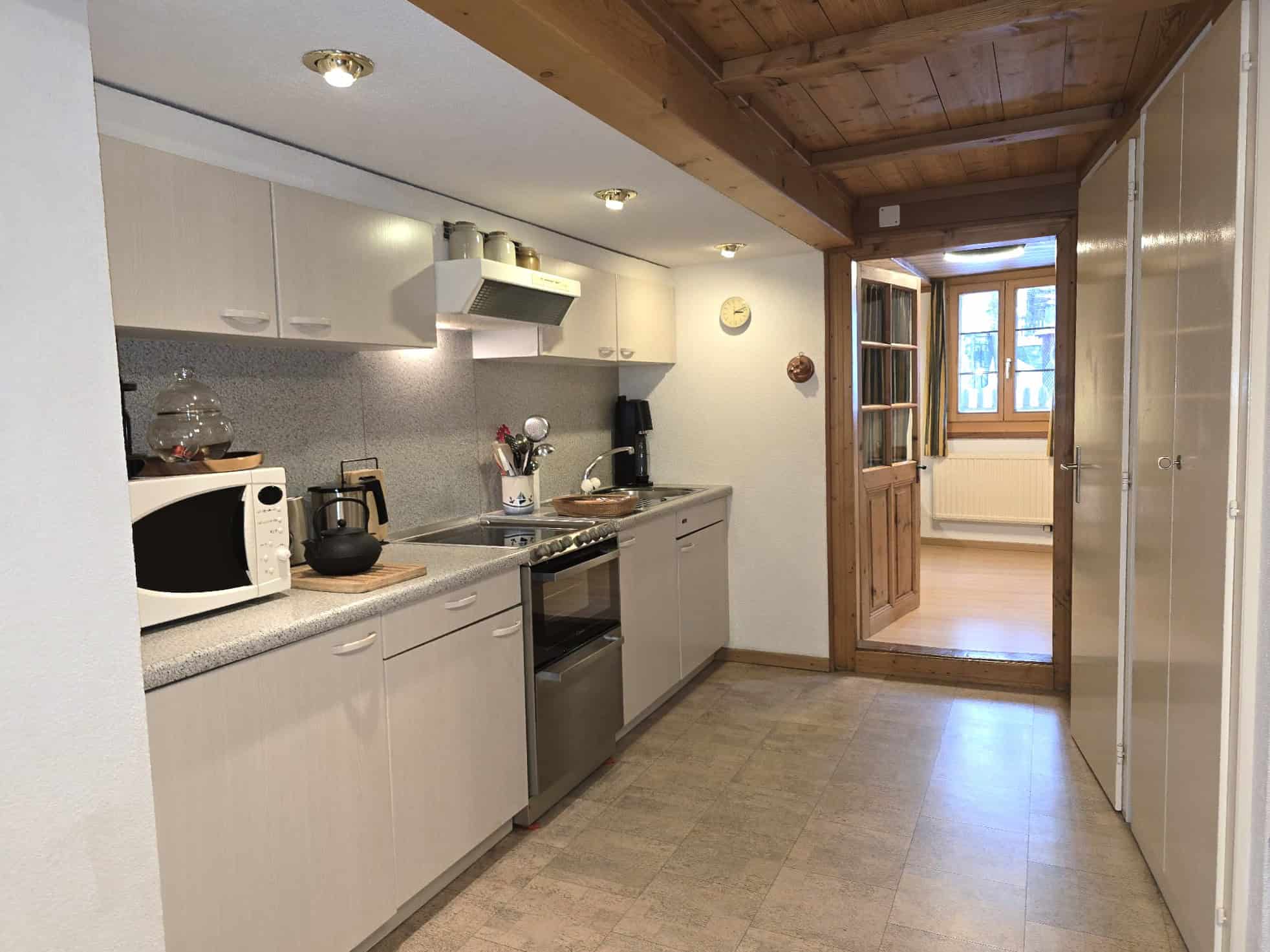 • Wohnküche mit Backofen, Cerankochfeld, Kühlschrank mit Tiefkühlfach, Nespresso Kapselmaschine, Wasserkocher, Mikrowelle, Geschirrspülmaschine
