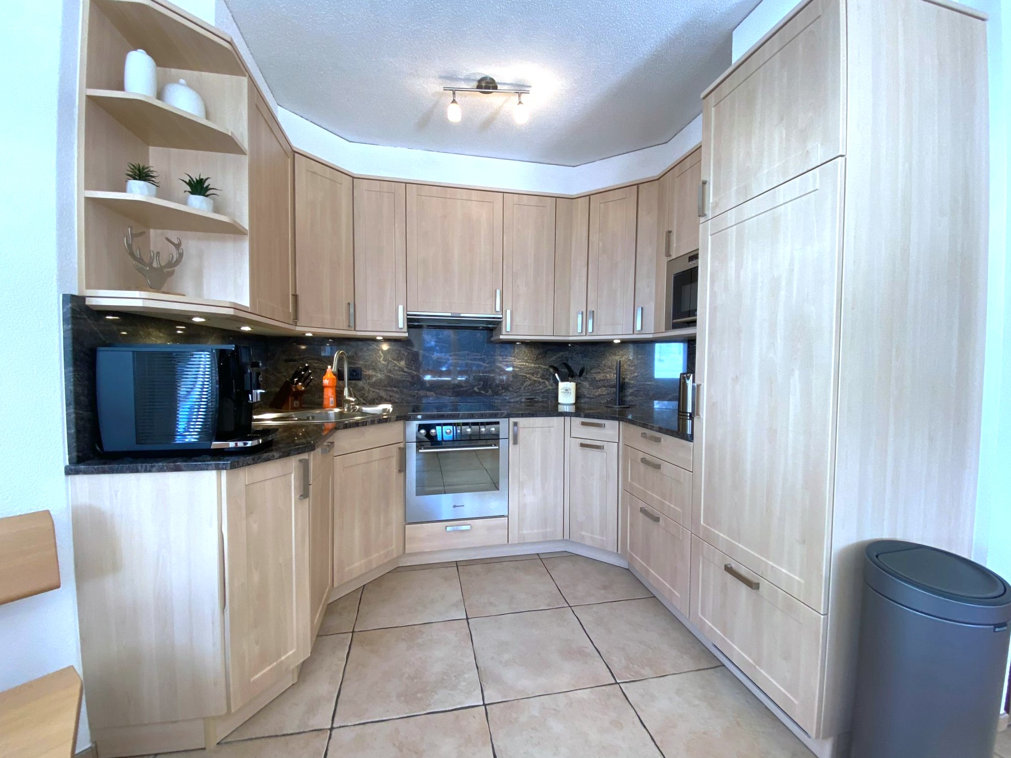 •  Offene Küche mit Backofen, 4 Kochplatten, Kühlschrank mit Tiefkühlfach, Wasserkocher, Raclette- und Fondueset, Geschirrspülmaschine, Fondue, Raclette, Kaffeemaschine Jura
